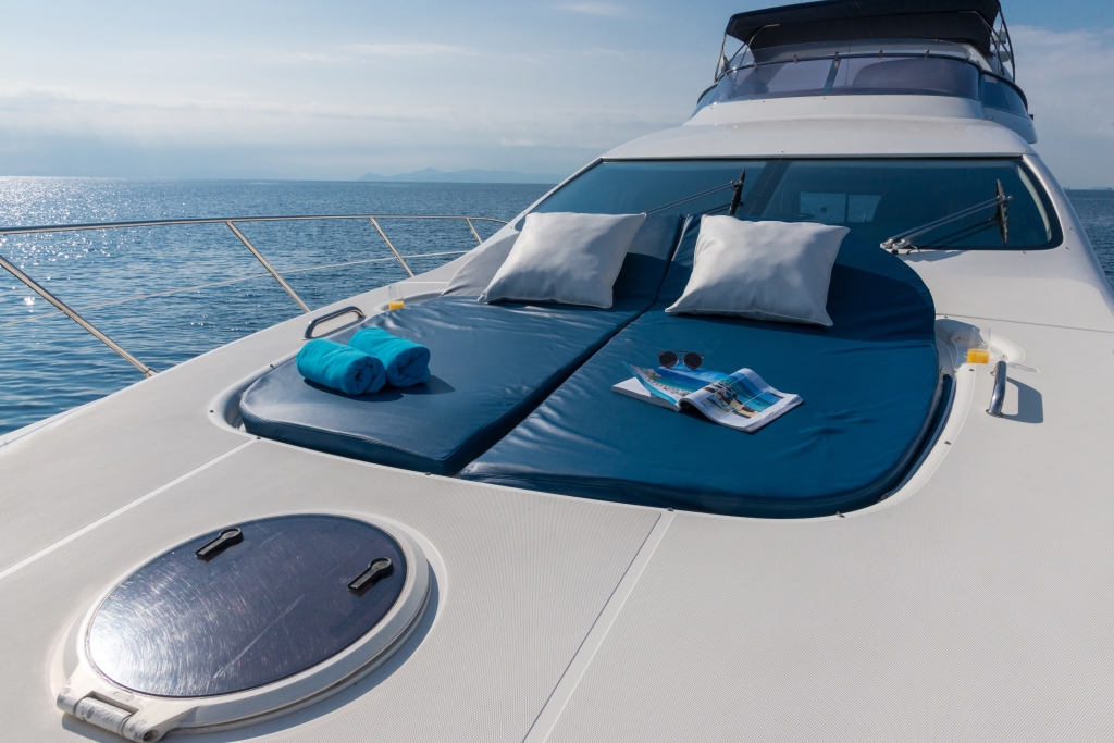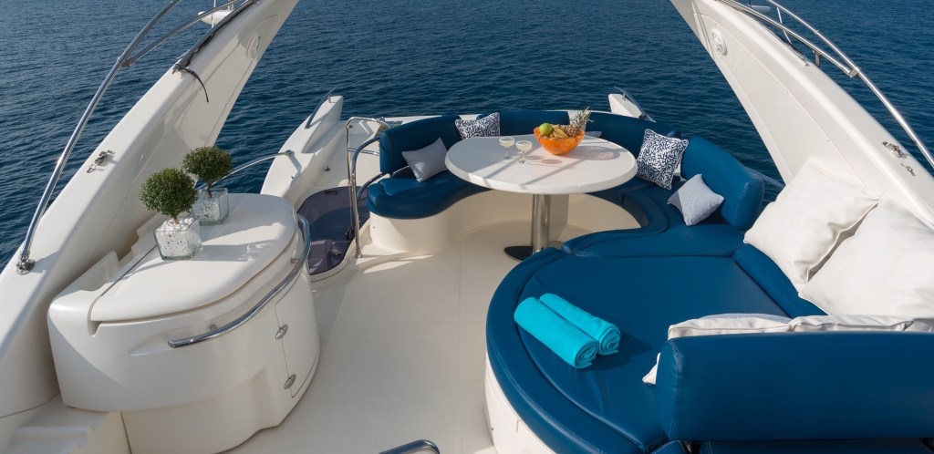 Για ατέλειωτες ώρες ηλιοθεραπείας στην πρύμνη του σκάφους έχουμε φροντίσει να έχετε σκιά και απομόνωση όπως εσείς επιθυμείτε με το ειδικό bimini.