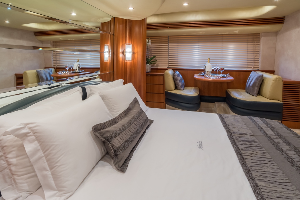 Η Master και η VIP καμπίνες διαθέτουν διπλά κρεβάτια queen size, ενώ οι άλλες δύο  twin διαθέτουν δύο μονά κρεβάτια καθεμία. Στην μία twin τα μονά κρεβάτια μπορούν να μετατραπούν σε ένα διπλό.