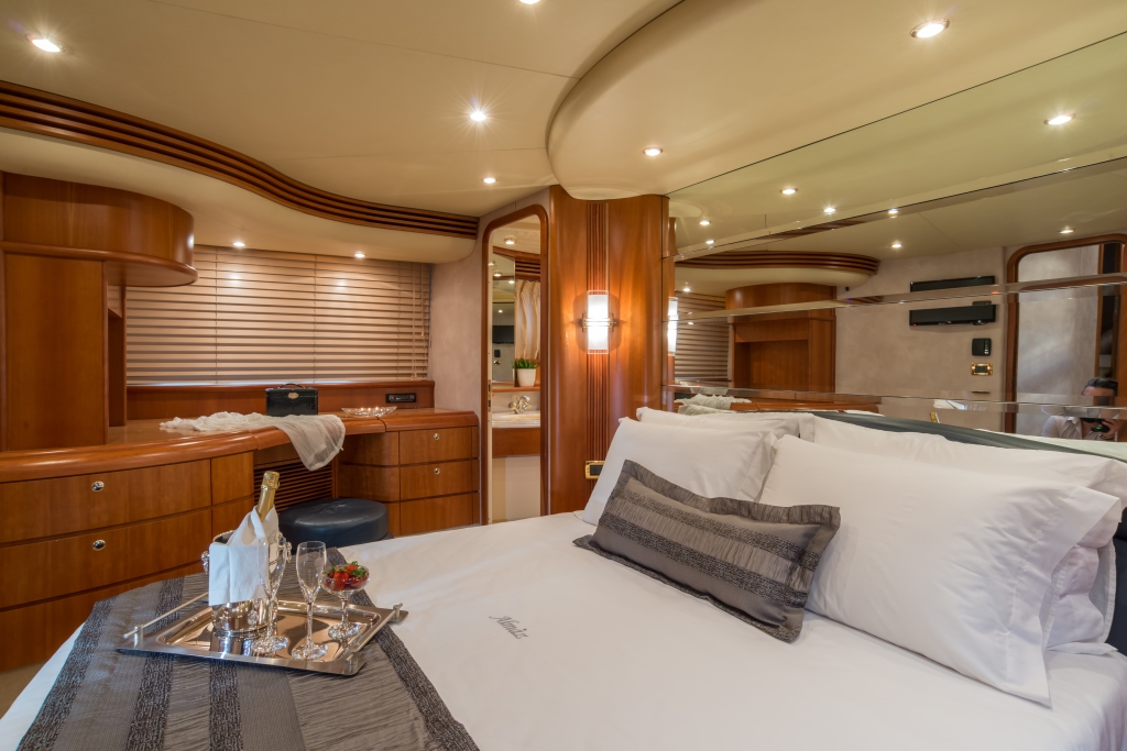 Οι καμπίνες Master και VIP διαθέτουν διπλά κρεβάτια queen size, ενώ οι άλλες 2 έχουν δύο μονά κρεβάτια η καθεμία.